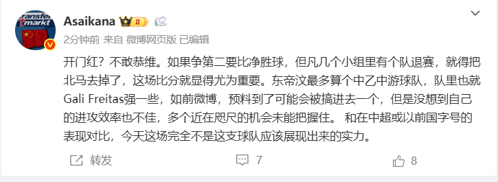 开门红?不敢恭维。如果争第二要比净胜球,但凡几个小组里有个队退赛,就得把北马去掉了,这场比分就显得尤为重要。东帝汶最多算个中乙中游球队,队里也就Gali Freitas强一些,如前微博,预料到了可能会被搞进去一个,但是没想到自己的进攻效率也不佳,多个近在咫尺的机会未能把握住。